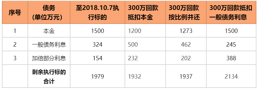 但我們以300萬元全額抵扣一般債務利息進行計算時,至2021年3月20日執行標的仍有2134萬元,扣除其他執行費用后,本案可以足額受償,并未超額扣劃。