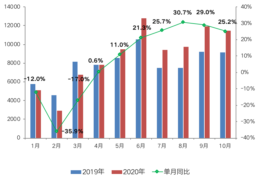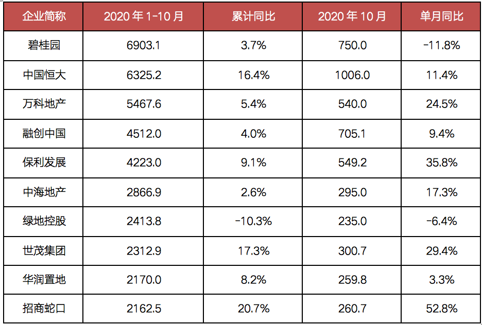 從企業業績表現來看,2020年10月,TOP100房企中有近8成企業實現單月業績同比提升。截至10月末,已有超8成房企累計業績超過去年同期,實現同比增長。