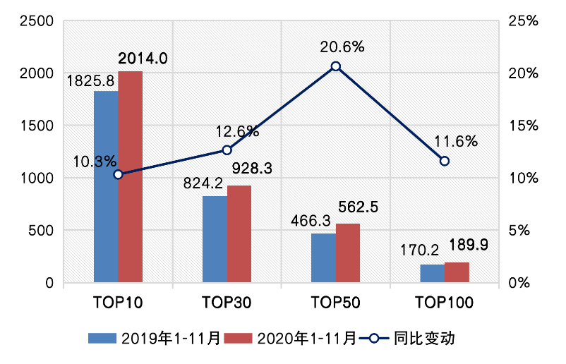 10月業(yè)績同比增速進(jìn)一步回落,50強(qiáng)門檻增長20.6%