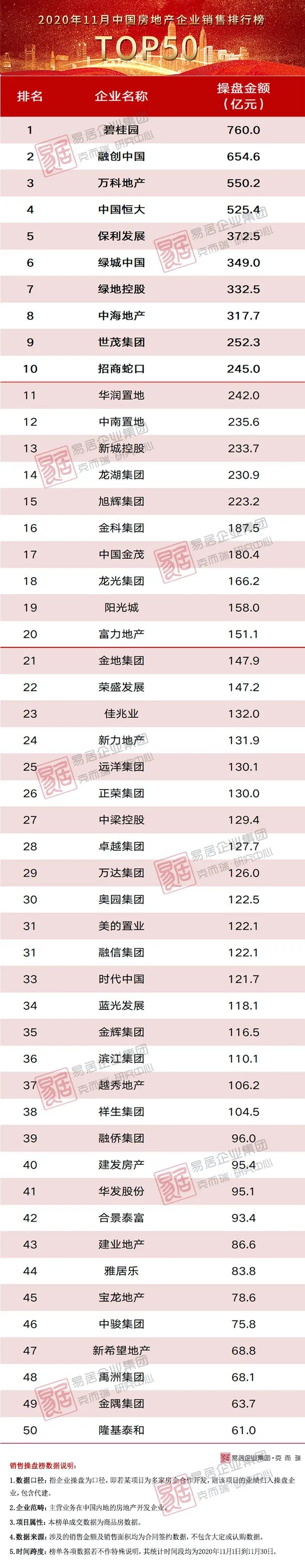 截至11月末,TOP100房企操盤金額門檻達(dá)到189.9億元,門檻增速為11.6%,較去年同期有明顯提升。