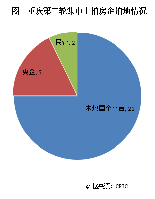 從競(jìng)得土地房企來(lái)看,首輪土拍中表現(xiàn)積極的龍湖、融創(chuàng)(拿地金額近百億)等房企表現(xiàn)均不積極、甚至未參拍,成交的大部分地塊均是土地國(guó)企平臺(tái)“兜底”的;除此之外,中海、中鐵二十局、葛洲壩等少數(shù)央企低價(jià)抄底。相比之下,民營(yíng)企業(yè)參拍積極性明顯下挫。