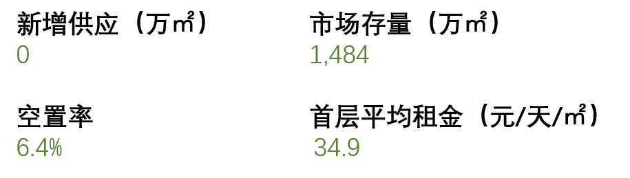截至季末,全市空置率環比下降0.3百分點至三年新低6.4%,全市購物中心首層租金環比上升0.4%至每天每平方米人民幣34.9元。