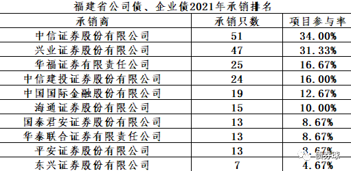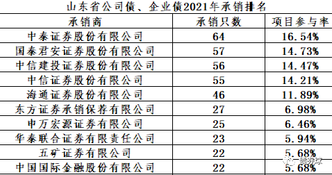筆者統計了2021年江蘇、浙江、山東、福建、湖南5省2021年企業債、公司債總體排名各券商在當地項目的參與率。所謂參與率,即由主承銷當地項目的數量占當年當地發行項目總數的比例。