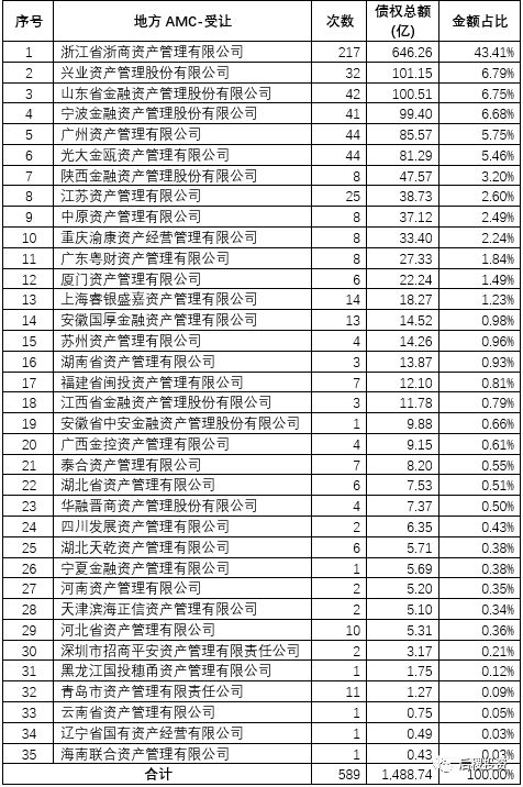 地方AMC作為不良資產市場的主要參與者,相較于四大AMC,市場上關于他們的運行情況,鮮見相關的公開運營數據,這對廣大投資者了解市場趨勢是極為不利的,為此,筆者整理了2018年全國各地方AMC公開受讓與出讓的金融債權數據,通過多維度的統計分析(地方AMC及其控股的地級平臺子公司分析時按一個主體),以求能勾勒出地方AMC的立體輪廓,為各市場主體做出投資參考。