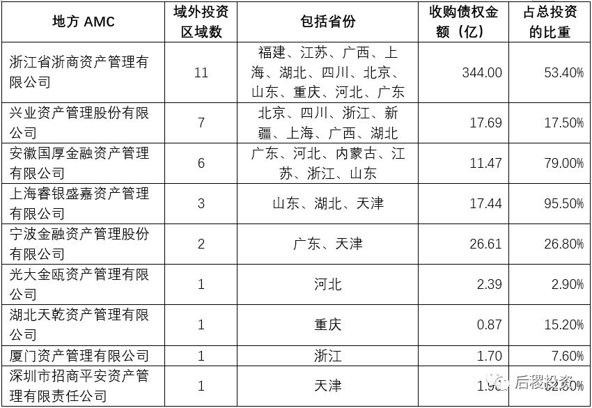 隨著市場競爭的加劇,市場上的主要參與者跨區域化、全國化的趨勢越發明顯,地方AMC的跨區域投資也正當其時。