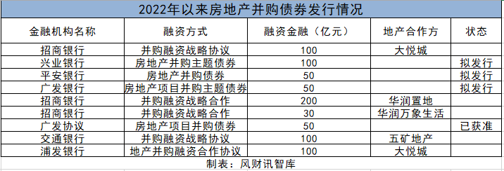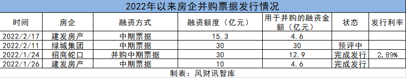 4)用途上可以用于支付并購股權對價,但不得變相用作土地出讓金或保證金,目前整體規模有限。與此同時,并購票據與銀行并購貸款相輔相成。據風財訊智庫統計,2022年年初以來,目前已有建發、招商蛇口2家完成了并購中期票據發行,諸如萬科、華潤、中海等優質企業亦有發行意愿。