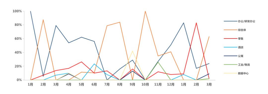 成交總額同環(huán)比上漲,辦公和綜合體為主力