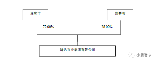 從股權(quán)結(jié)構(gòu)上看,鴻達(dá)興業(yè)集團(tuán)的控股股東為自然人周奕豐,持股比例為72%,二股東鄭楚英持股28%,兩人為夫妻關(guān)系。