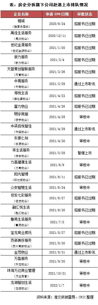在房企分拆旗下公司上市方面,本月沒有房企旗下公司遞交或更新招股書。因此截至2022年2月底,在港交所遞交過招股書而仍未上市的房企旗下公司共有24家,其中有多家企業的招股書都已過期,未來是否還會堅持上市有待觀察。