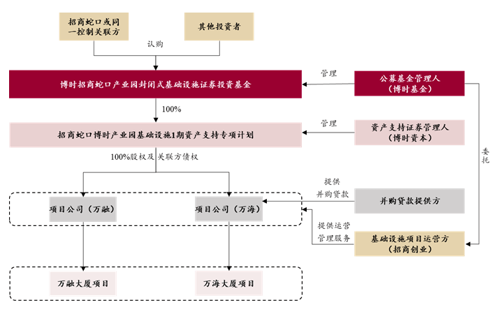 招商蛇口REITs的結構中相對比較特殊的點是,引入了并購貸款,用以支付項目公司股權交易對價。SPV(萬海)擬作為借款人向招商銀行深圳分行申請貸款,授信金額為 4 億元,首次提款金額為人民幣 3 億元,用途限于支付項目公司股權交易對價。