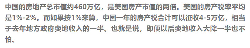 總之,房產稅一定不會太高,且在很長時間內,土地出讓金無可替代!