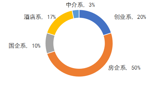 房企開發商背景的長租公寓運營企業擁有母公司的土地資產和融資成本占據著明顯的行業優勢,在TOP30集中式長租公寓企業中占比50%。而創業系企業在前幾年集中入場后因資源端與資金端都沒有先發優勢,因此陸續陷入“爆雷”窘境。