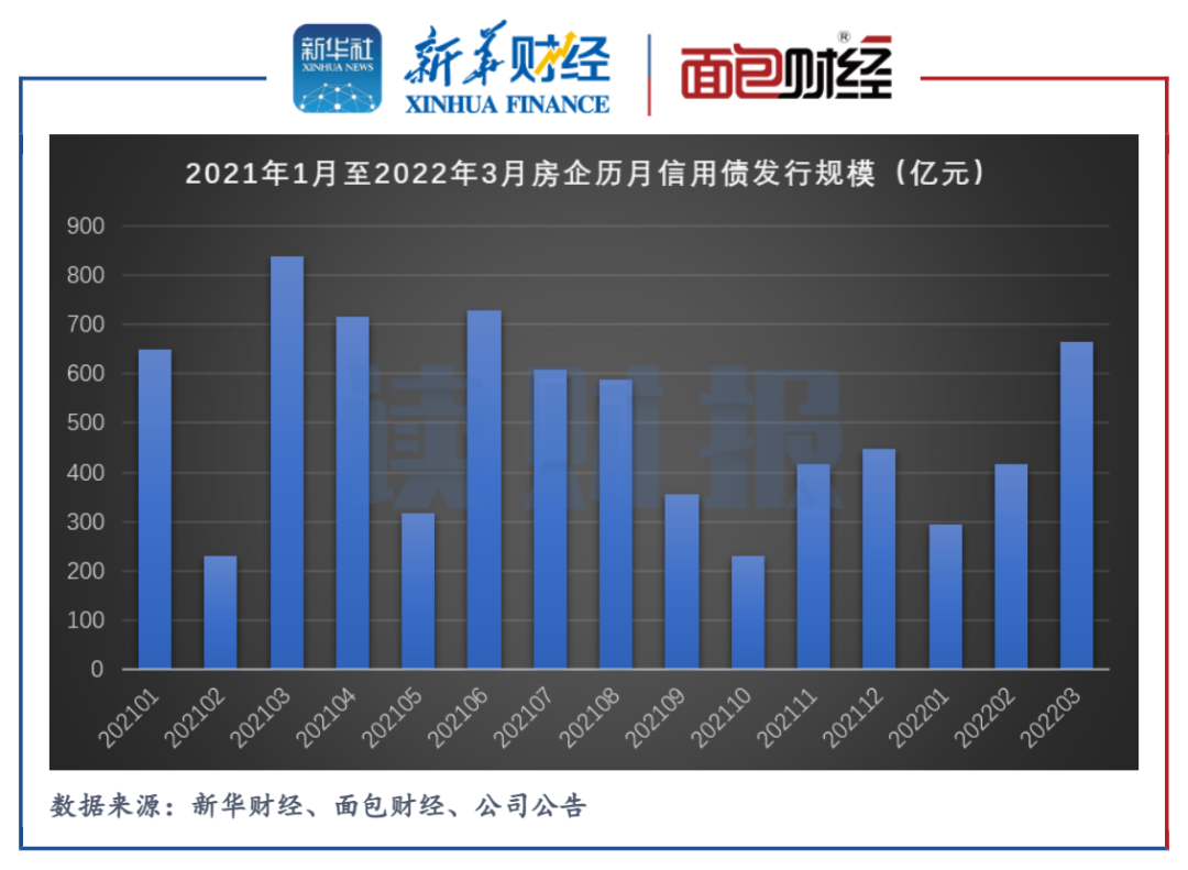 新華財(cái)經(jīng)和面包財(cái)經(jīng)研究員統(tǒng)計(jì)了房地產(chǎn)開(kāi)發(fā)企業(yè)2022年一季度境內(nèi)信用債和境外美元債的發(fā)行情況。