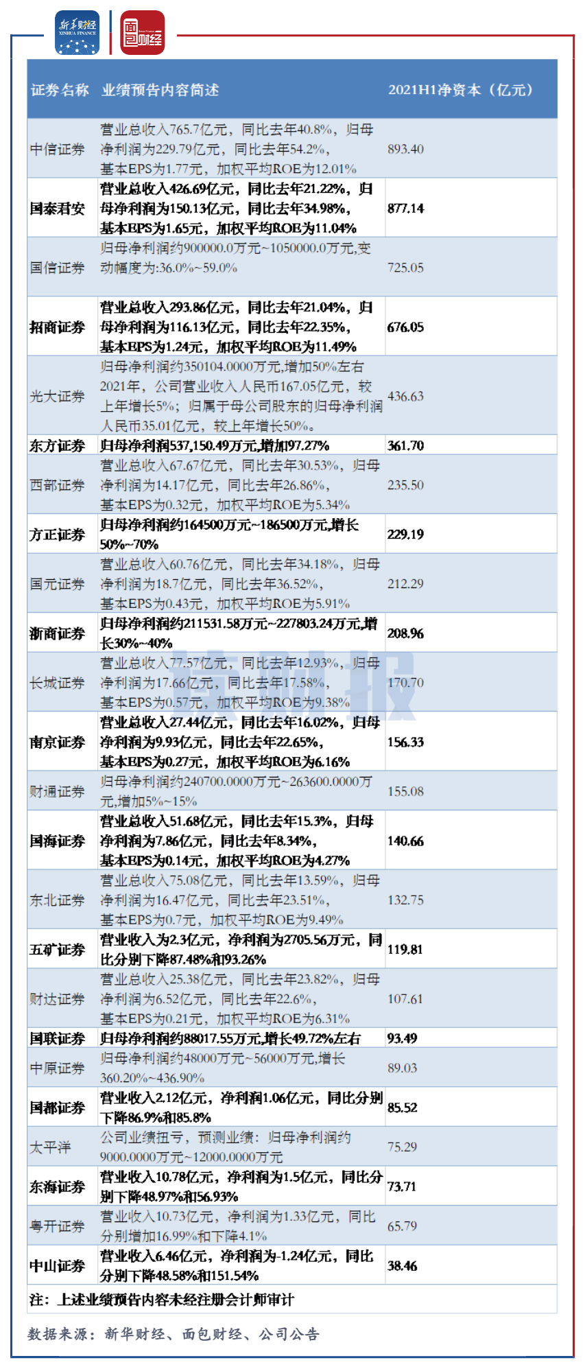 截至2022年2月上旬,合計24家券商公開2021年業績,其中,19家預計凈利潤增加。從凈資本規模上看,已披露業績預告的上市券商中包括中信證券、國泰君安等大型券商和中原證券、太平洋等規模相對較小的中小券商。