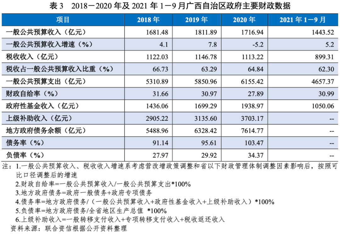 2.廣西自治區政府財政實力及債務情況