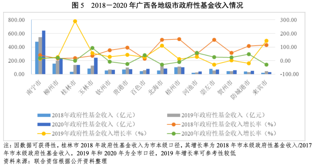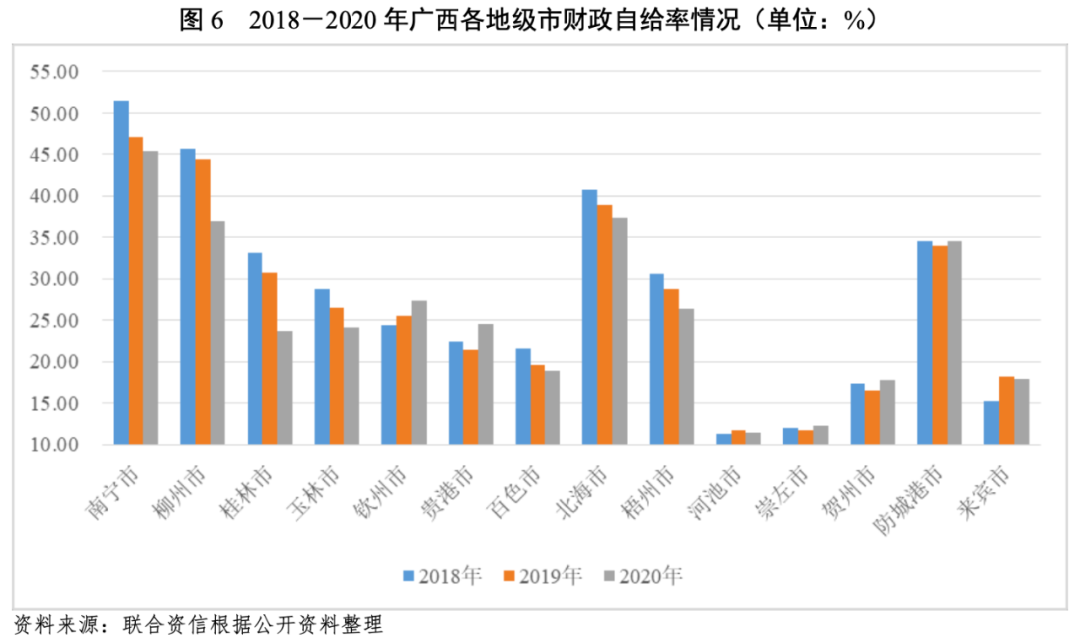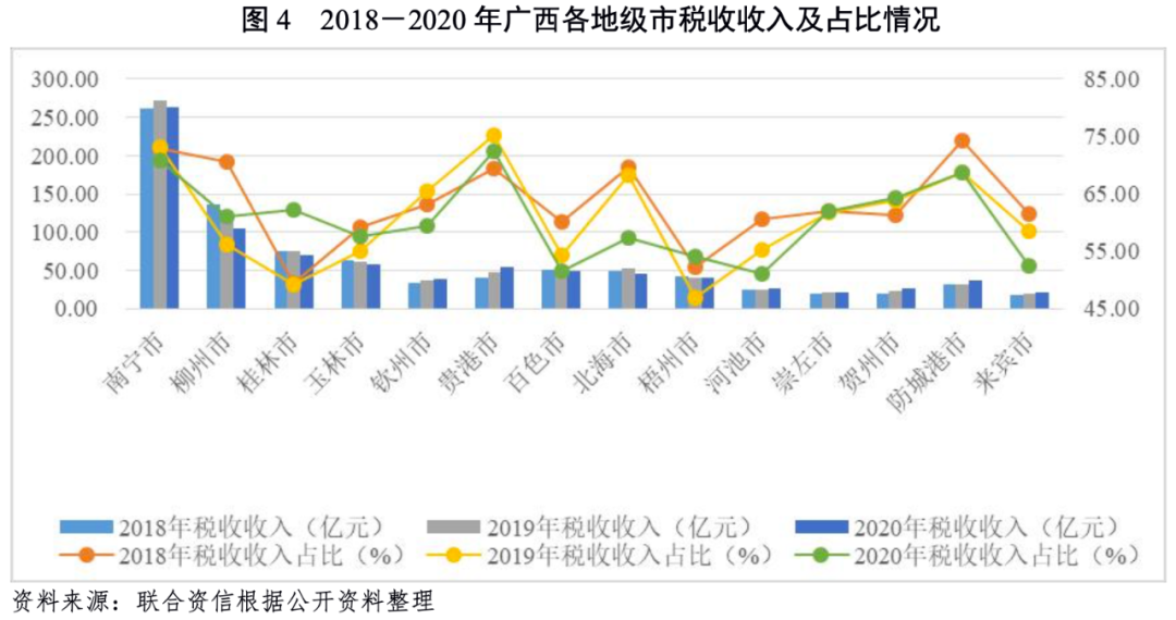 3.廣西各地級市財政收入對發債城投企業債務的支持保障能力