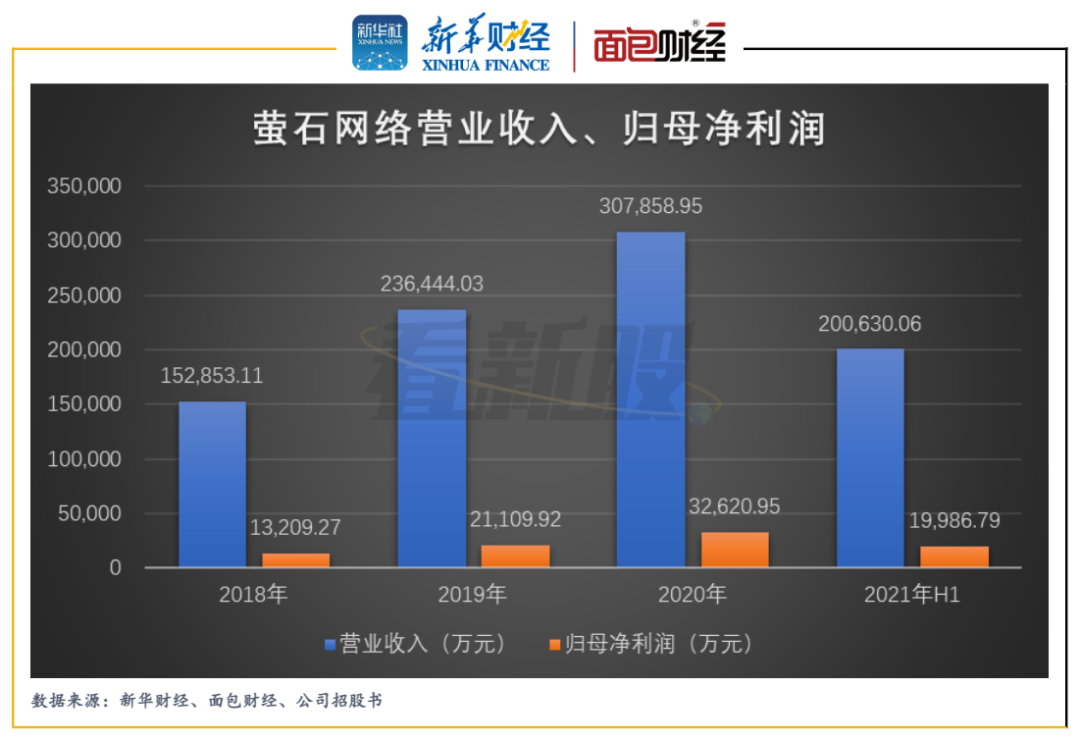 2021年上半年,螢石網絡分別實現營收、歸母凈利潤20.06億元和2億元。