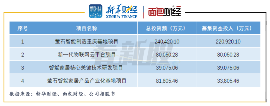 此次上市,螢石網絡計劃融資37.39億元,主要用于螢石智能制造重慶基地、新一代物聯網云平臺、智能家居核心關鍵技術研發以及螢石智能家居產品產業化基地項目。