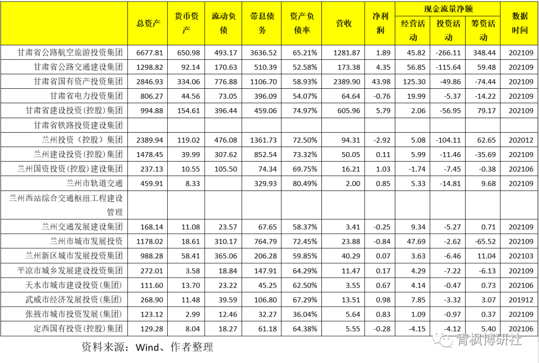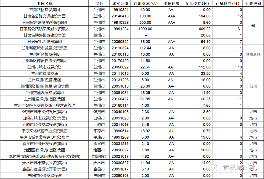 (一)城投:共有27家城投平臺(tái),蘭州地區(qū)(含蘭州新區(qū))有10家