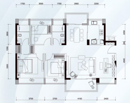 如果預算更充裕,還有一個更大的118平3+1房2廳2衛D戶型,空間尺度更大,南北雙陽臺通透戶型,陽光清風對流。