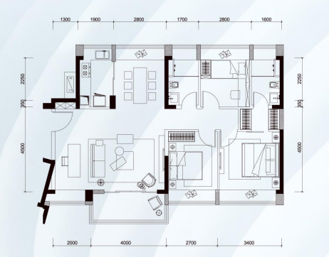 在售98平3房2廳2衛A戶型,格局方正,功能分區明確,使用率非常之高。餐廳、客廳、陽臺等公共區域連成一線,生活更為寬敞舒適。
