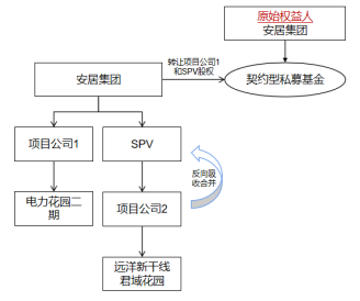 1、安居集團設立項目公司1、項目公司2以及SPV,將電力花園二期物業資產納入項目公司1,將遠洋所干線君域花園物業資產納入項目公司2,再將項目公司2的股權轉讓至SPV。