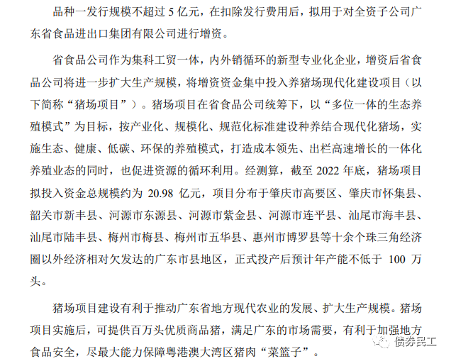 根據21廣新V1的募集說明書,本期債券的募集資金擬用于對全資子公司廣 東省食品進出口集團有限公司進行增資。也就是說,本期債券的募集資金100%用于鄉村振興領域。