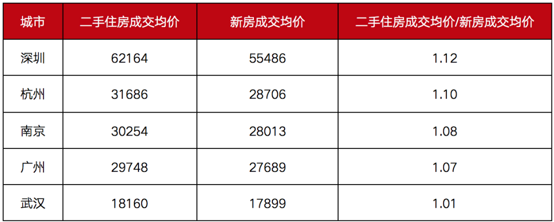 表:2020年二手住房成交均價和新房成交均價對比情況(單位:元/平方米)