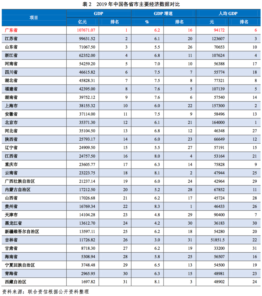 廣東省地處中國南部,是中國開放程度最高、經濟活力最強的區域之一。近三十年來,廣東省經濟總量均位于中國首位,人均GDP處于中國領先水平,但近三年經濟增速有所放緩;同時,廣東省也獲得了國家層面區域經濟發展政策的有力支持,經濟發展態勢良好。2020年上半年,受新冠肺炎疫情影響,廣東省經濟增速及固定資產投資規模增速等明顯下滑。