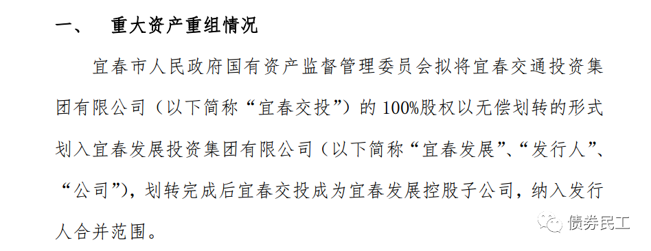 4、2021年12月1日,宜春發(fā)展投資集團(tuán)有限公司公告,宜春市人民政府國有資產(chǎn)監(jiān)督管理委員會擬將宜春交通投資集團(tuán)有限公司的100%股權(quán)以無償劃轉(zhuǎn)的形式劃入公司,納入公司合并范圍。