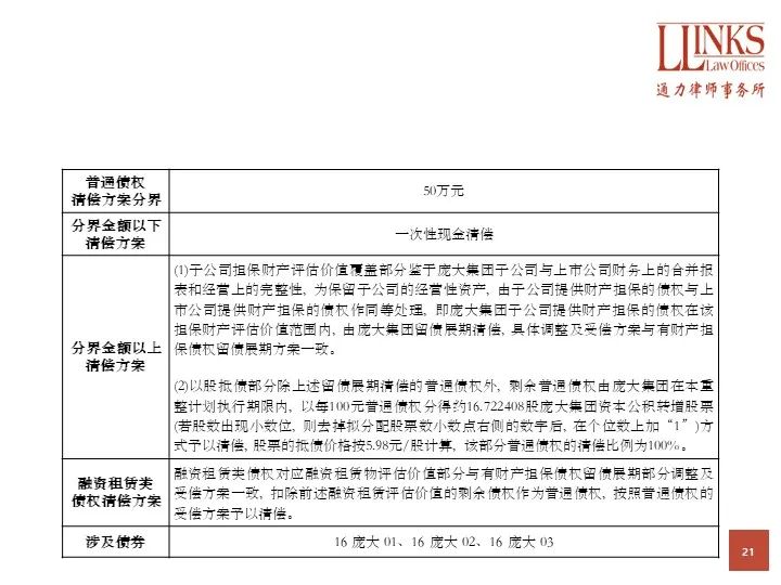 隨著方正、海航、華晨、康美等大家耳熟能詳?shù)钠髽I(yè)紛紛進(jìn)入破產(chǎn)重整程序, 債權(quán)人不得不開始學(xué)習(xí)了解 “申報(bào)債權(quán)”“債權(quán)人委員會”“重整計(jì)劃”“債權(quán)清償率”等等此前并不熟悉的事務(wù),而其中與債權(quán)人切身利益最直接相關(guān)的就是“重整計(jì)劃”,債權(quán)人往往最為關(guān)注自己手上的債權(quán)通過“重整計(jì)劃”還能追回些什么。