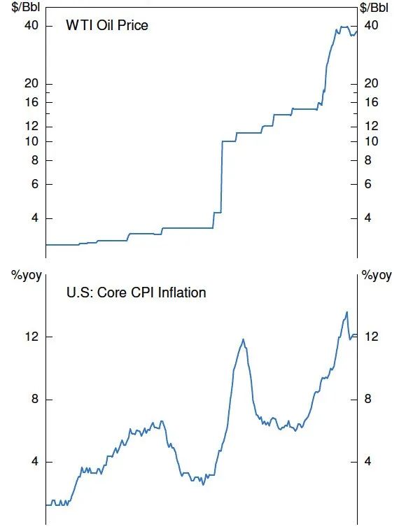 一般來說,“突變”狀態多來自于“供給端”和“外生沖擊”。比如1973年中東石油危機期間,國際油價從4美元/桶一年之內上漲至10美元/桶,之后數年上漲至40美元/桶,對推升核心通脹等產生了巨大的影響(圖3)。其他的外部沖擊可能包括:
