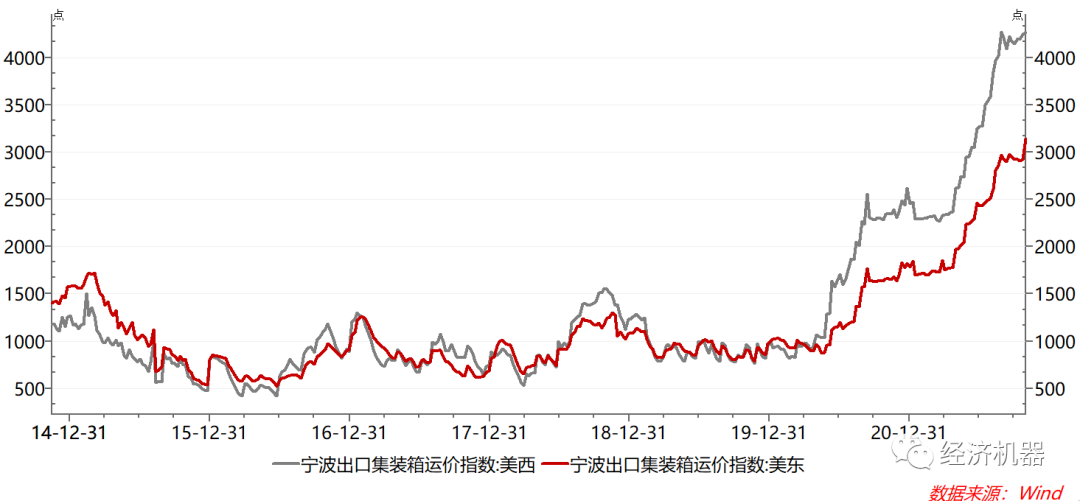 疫情沖擊下,供應鏈危機比預期更嚴重。疫情沖擊下,全球出現了嚴重的供應鏈危機。年初,市場普遍認為,隨著疫苗接種完成和經濟活動恢復,供應鏈斷裂的情況會出現緩解。但下半年以來,供應鏈危機非但沒有緩解,反而呈現愈演愈烈走勢,歐美多個港口出現貨物積壓,缺少卡車司機將貨物運離。電力、原材料短缺是供應鏈危機的重要原因。盡管疫情整體上得到有效控制,但部分西方國家將“疫苗簽證”政治化,阻礙了國際間貨物通關和人員流動,惡化了供應鏈危機。寧波集裝箱出口運價指數國慶后再創新高,顯示近期供應鏈危機并未有效緩解。目前供應鏈危機已經成為全球性問題,除非各國間協調應對,否則未來大概率會進一步惡化。