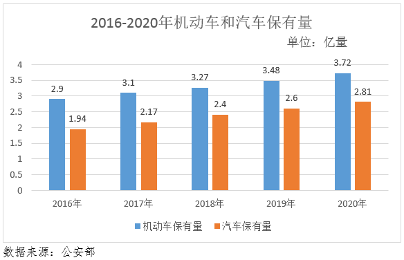 公安部統(tǒng)計(jì)數(shù)據(jù)顯示,2020年全國(guó)機(jī)動(dòng)車保有量達(dá)3.72億量,其中汽車2.81億量。2020年全國(guó)新注冊(cè)登記機(jī)動(dòng)車3328萬(wàn)輛,新領(lǐng)證駕駛?cè)?231萬(wàn)人。