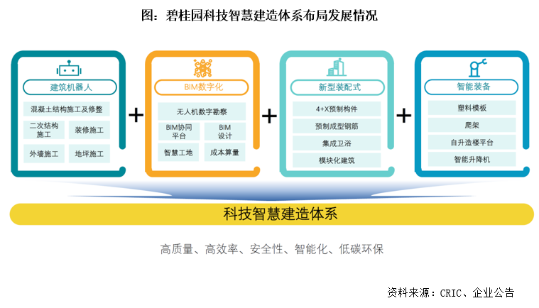 在以地產(chǎn)為核心主業(yè)的同時(shí),碧桂園也圍繞客戶全生命周期需求,布局全產(chǎn)業(yè)鏈。持續(xù)提升全周期綜合競爭力,推進(jìn)全生態(tài)可持續(xù)發(fā)展,以科技賦能、全競提升。其中,科技智慧建造包括博智林機(jī)器人、現(xiàn)代筑美家具,涵蓋了智慧施工、新型裝配式、建筑機(jī)器人、BIM數(shù)字化以及上下游產(chǎn)業(yè)鏈。此外,還有千璽機(jī)器人集團(tuán)、碧優(yōu)選、碧桂園現(xiàn)代科技農(nóng)業(yè)等增值服務(wù)。我們認(rèn)為,科技賦能下的多元產(chǎn)業(yè)的布局,未來將對(duì)地產(chǎn)開發(fā)主業(yè)形成更強(qiáng)的協(xié)同效應(yīng),也有望為碧桂園帶來更大的長期發(fā)展空間。