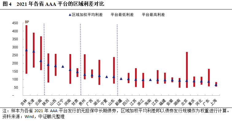 原標(biāo)題: 2021年全國AAA平臺(tái)發(fā)債利差對(duì)比