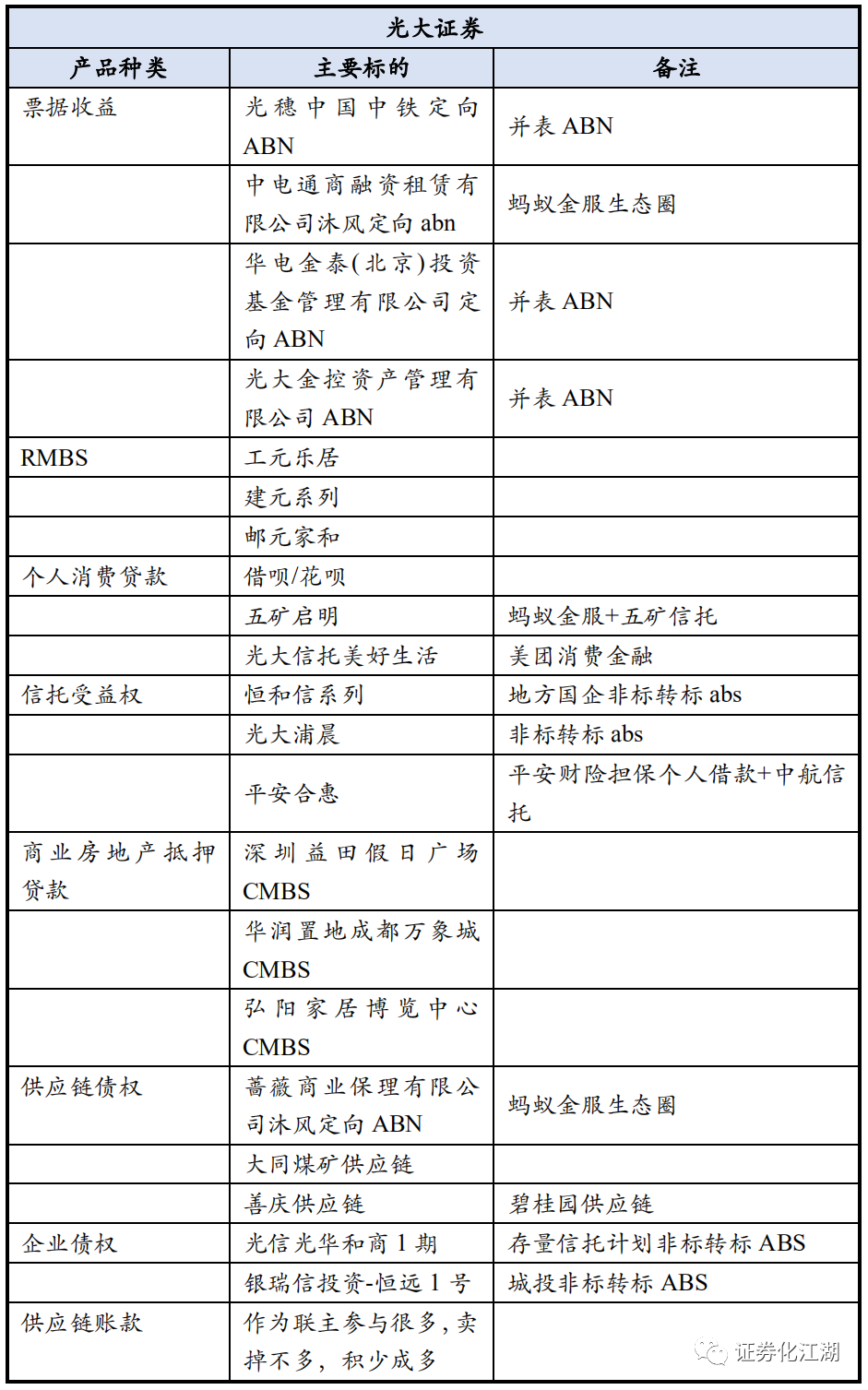 (3)排名TOP3三中均衡全面,其他幾家各有獨特優勢,例如招商的RMBS和汽車CLO(曾經霸榜的理由)、平安的供應鏈應收應付(銀行資源+多家地產商股東爸爸平安不動產)、光大的并表基金ABN和非標轉標abs(難念賣的經)、國君的租賃abs。