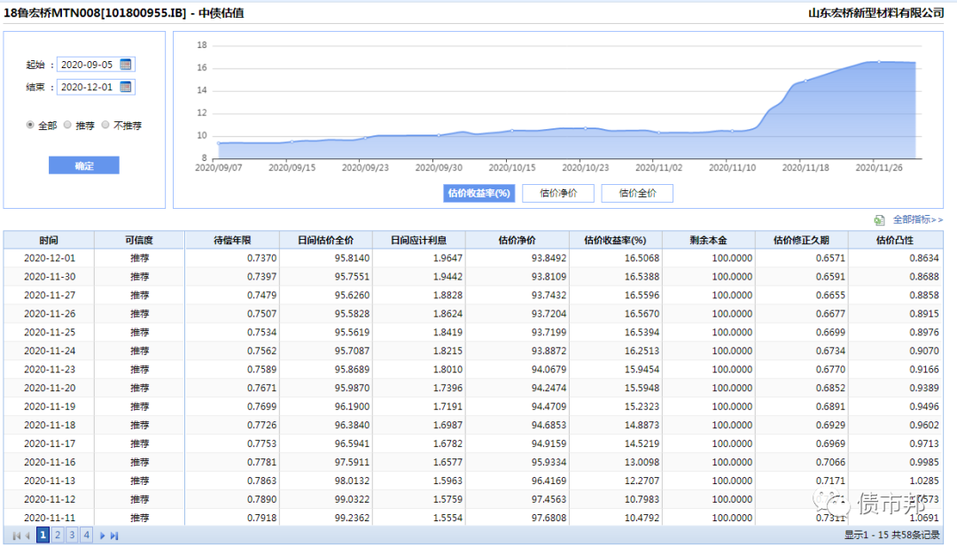 但后來細細一分析,不對啊,宏橋回購方案只是針對3筆馬上要在明年1月份到期的公司債,就連2月份要到期的16宏橋05都不愿意帶上。所以別看這三筆待回購債券的到期收益率高,但是凈價和面值差的不多。