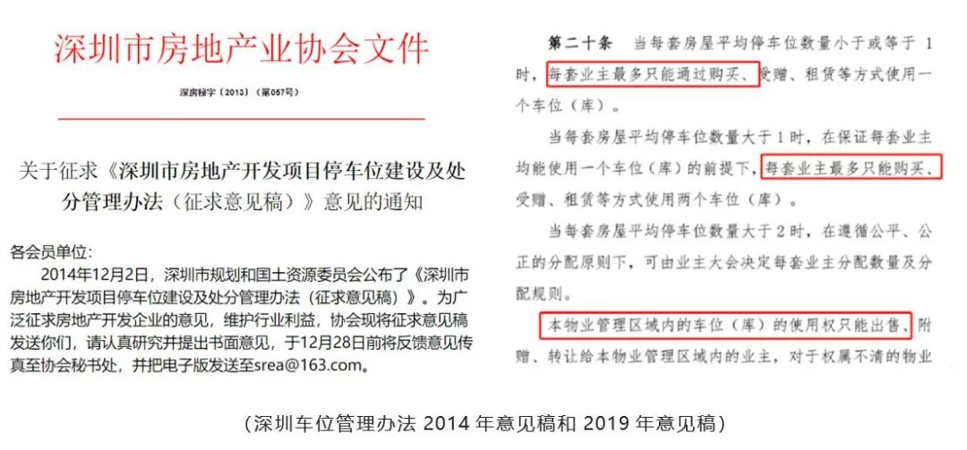 但2014年和2019年的管理辦法都是“意見稿”,沒有正式生效文件,因而引發(fā)深圳車位歸屬權(quán)和交易的爭議。