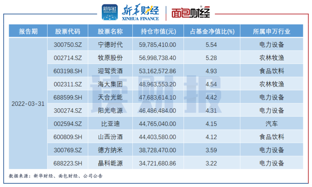 上述基金的重倉(cāng)股重合度較高,7只基金2022年一季度末的前十大重倉(cāng)股合計(jì)包括不到20只不同的股票,海大集團(tuán)、迎駕貢酒、晶科能源、天合光能、牧原股份等出現(xiàn)在多只基金的前十大持倉(cāng)中。