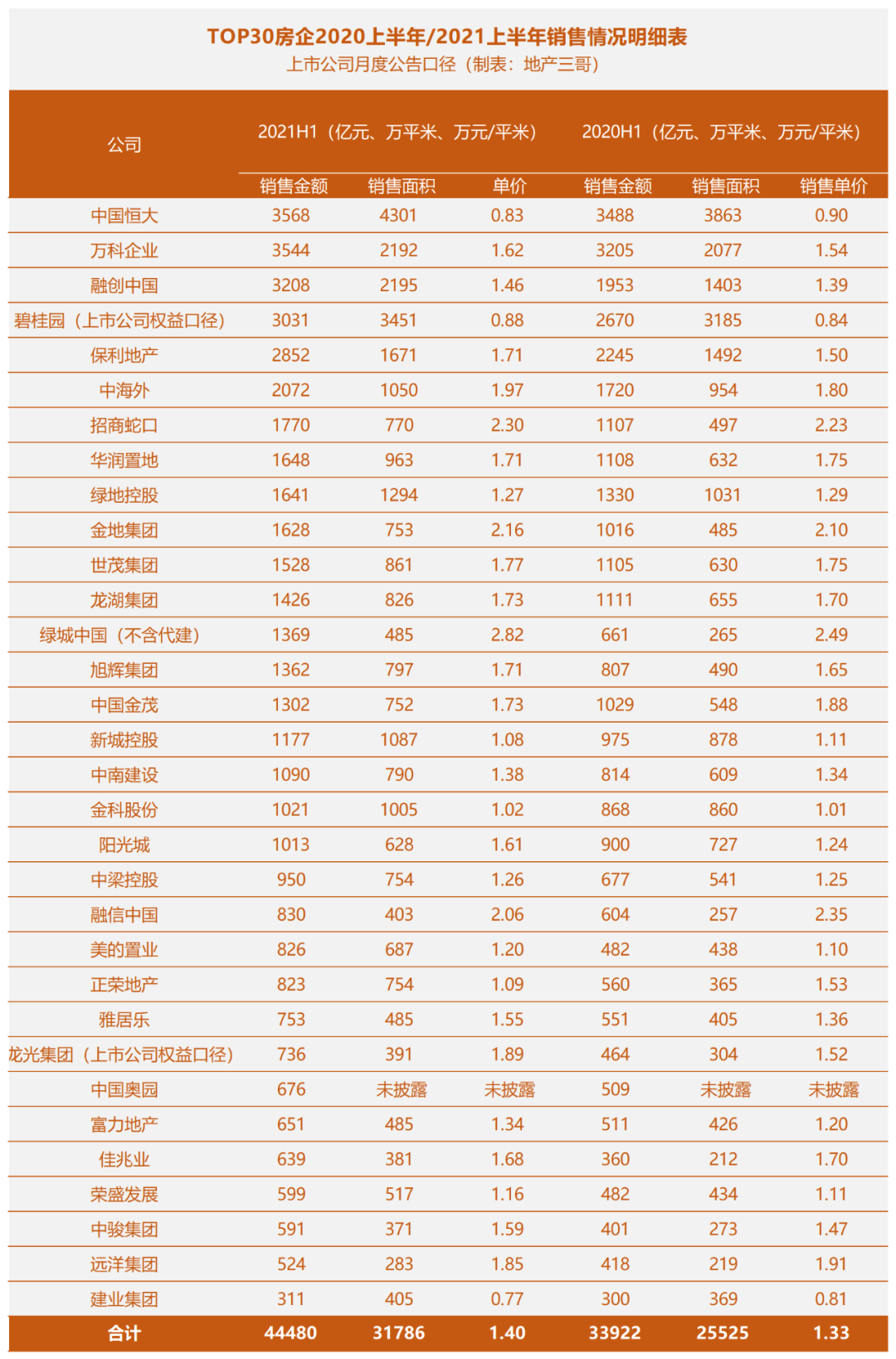在參詳了房企2021年上半年的TOP30房企銷售數據和宏觀數據之后,我們認為:
