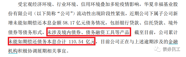 如果3月3日最終未能按時償付,“16華夏02”將是華夏幸福首只進行展期的債券。2021年3月1日,華夏幸福公告公司存在110.54億元債務(wù)逾期,但是未涉及境內(nèi)債券、債務(wù)融資工具等產(chǎn)品。