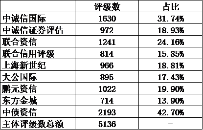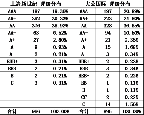 今天對(duì)各家評(píng)級(jí)機(jī)構(gòu)的評(píng)級(jí)結(jié)果進(jìn)行統(tǒng)計(jì)分析: