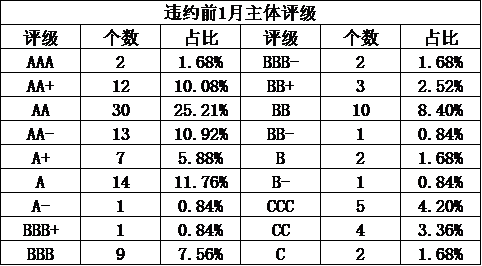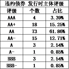 可以看出,對(duì)于發(fā)行人付費(fèi)模式的評(píng)級(jí)機(jī)構(gòu),評(píng)級(jí)結(jié)果普遍位于AAA、AA+及AA三個(gè)檔次。是因?yàn)槲覈?guó)經(jīng)濟(jì)發(fā)達(dá)到發(fā)債企業(yè)都如此優(yōu)質(zhì)么?畢竟AA級(jí)表示償還債務(wù)的能力很強(qiáng),受不利經(jīng)濟(jì)環(huán)境的影響不大,違約風(fēng)險(xiǎn)很低。但為什么AA及以上債券違約這么多呢?甚至違約前1月主體評(píng)級(jí)AA以上的還這么多呢?