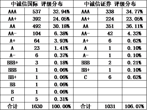 中誠(chéng)信作為我國(guó)最早一批評(píng)級(jí)機(jī)構(gòu),發(fā)展較好,客戶普遍優(yōu)質(zhì),因此高評(píng)級(jí)占比高可以理解。