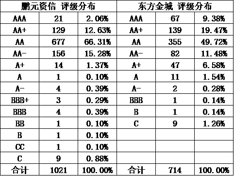 鵬元資信和東方金誠(chéng),對(duì)同一主體的評(píng)級(jí),經(jīng)常比中誠(chéng)信等機(jī)構(gòu)的高半檔,所以遇到他們的AAA或者AA+,要謹(jǐn)慎些。