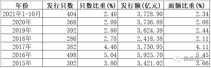 企業(yè)債券的歷年發(fā)行數據也能說明這個問題:2017年和2018年金額和只數下降很大,但是從2019年開始,企業(yè)債券的發(fā)行只數和數量開始提高。目前2021年1-10月的發(fā)行金額已經基本和2020年全年的持平,發(fā)行只數已經超過2020年全年。