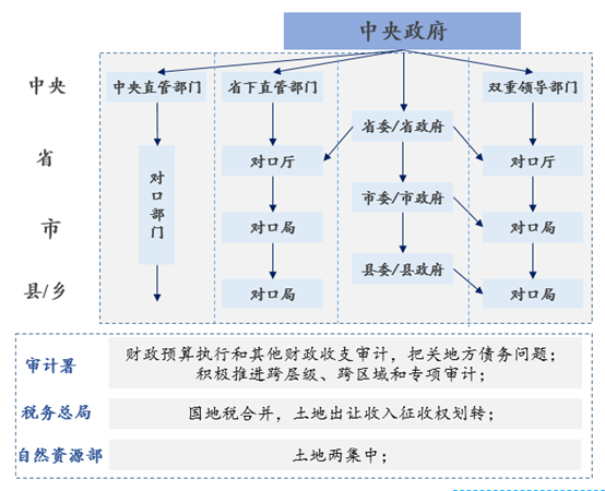 但是除此之外,為了防止地方結塊板結,像山西的腐敗塌方、東北等窩案,在政治組織上的改革也在不斷加強,典型的就是各中央部委如審計署、自然資源部、稅務總局等先后改革,權限突破此前的范疇,歸為垂直領導為主,加上反腐和中央巡視組的常態化機制,中央對地方的統籌能力進一步提升。