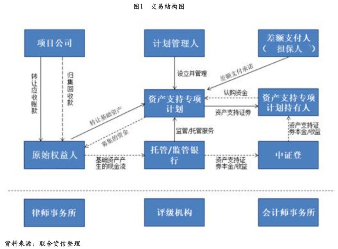 具體而言,專項計劃存續期內,原始權益人/資產服務機構按照約定的頻率將基礎資產回收款先轉入托管/監管賬戶,再轉入專項計劃賬戶。循環購買期內,計劃管理人在每一個循環購買日將相關購買價款從專項計劃賬戶劃付至原始權益人所指定的自有賬戶用于購買相應新增基礎資產。循環購買期結束后,進入分配期。在專項計劃存續期內,若專項計劃賬戶內可供分配的資金不足以按照交易文件約定的分配順序支付專項計劃的應繳稅金及費用和優先級證券當期的預期收益、或償還本金,則由計劃管理人通知差額支付人(擔保人)將對應的金額匯付至專項計劃賬戶。
