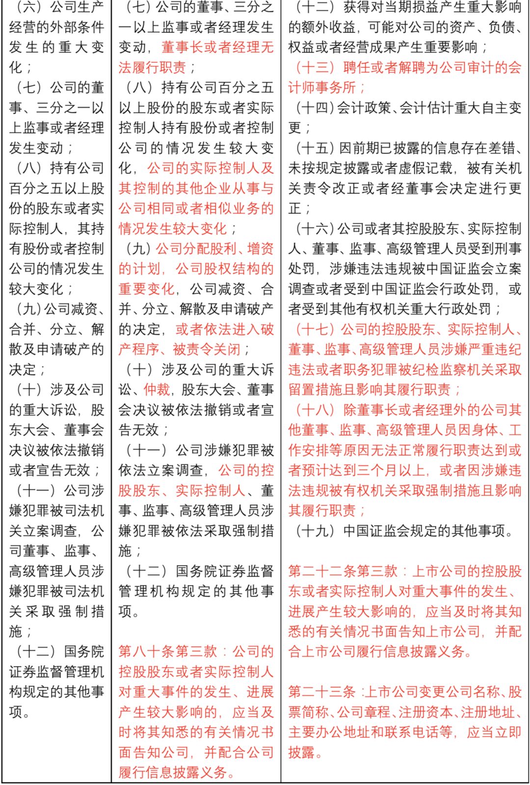 2)新法對“重大事件”披露制度進行了哪些補充和完善?